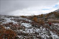 Lördag. Några centimeter snö låg på marken när vi klev upp. I samband med frukosten snickrades det till en lunchpåse med dryck och mackor. Vandringen gick till Ulvåtjärn, c:a 5 km från fjällstationen. Vädret växlade mellan snöbyar och solsken. Vi var tillbaka i Storulvån vid tretiden efter en skön vandring. Klicka på bilderna för att se dem i större format. |